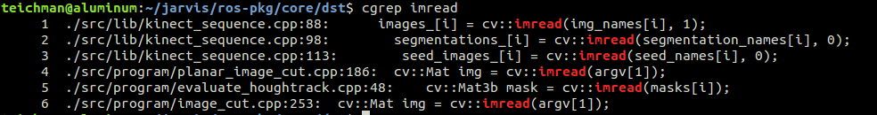 This is similar to the output of ack --nogroup --cpp imread, but with the addition that you can quickly open one of the matches and navigate to the appropriate line number using yank.